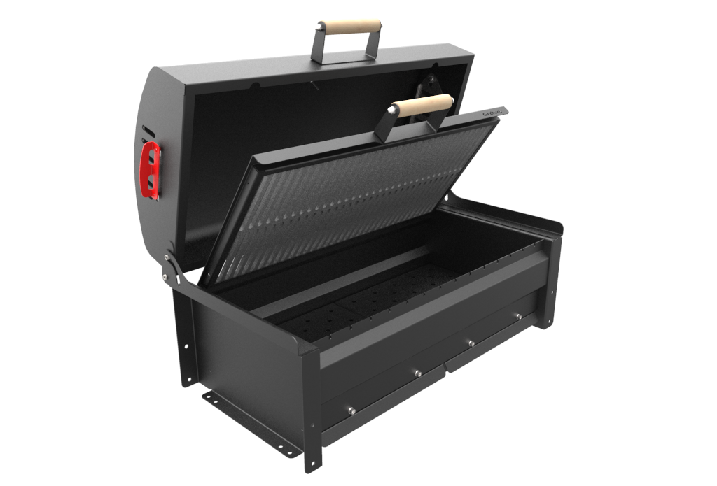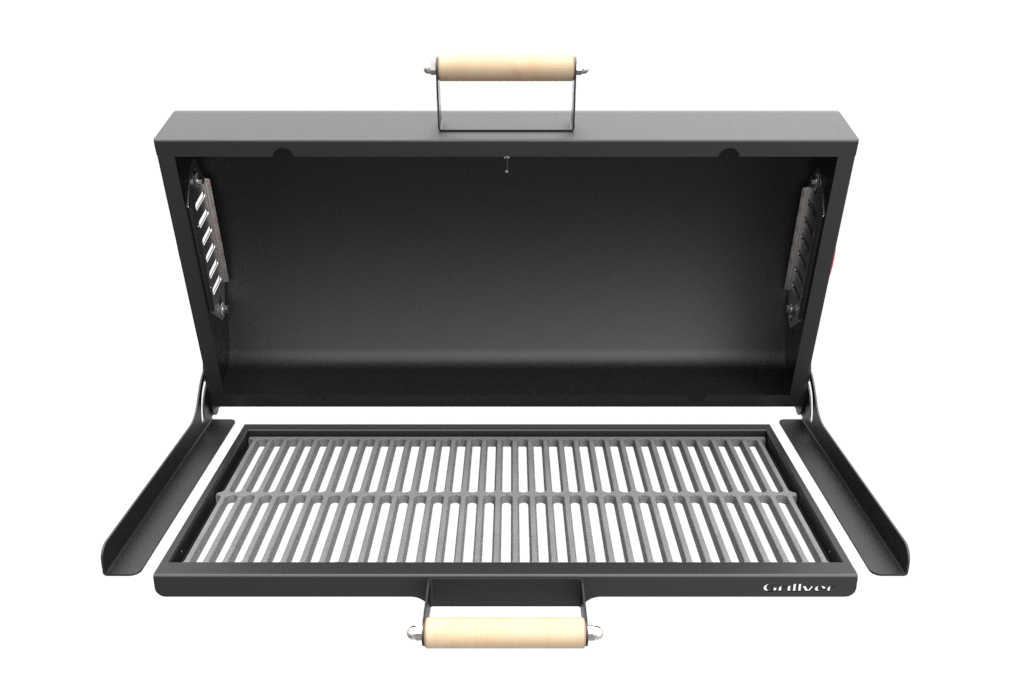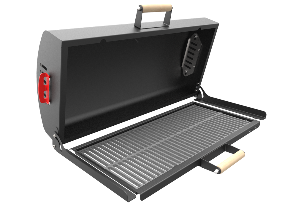 Интенсивность горения углей и температура под крышкой регулируется открытием-закрытием зольных ящиков, а также открытием-закрытием вентиляционных заслонок на крышке. Наличие термометра позволяет контролировать жар под крышкой, а наличие вентиляционных заслонок в боковых стенках крышки позволяет его регулировать.