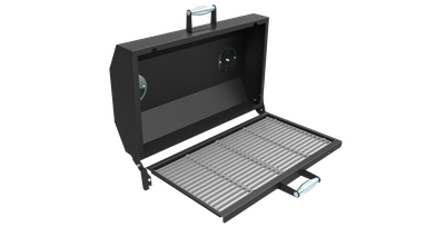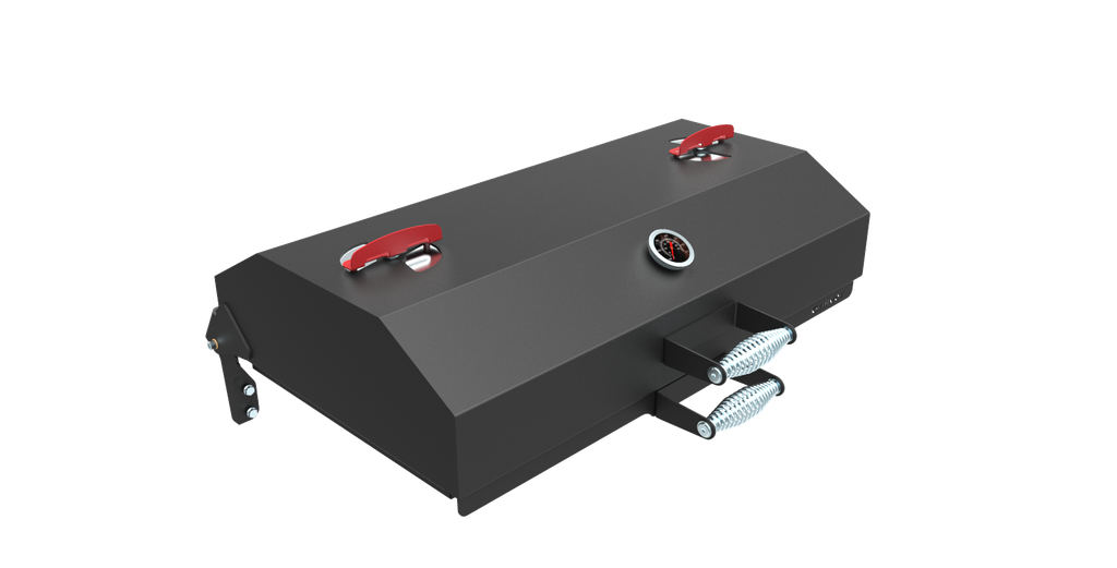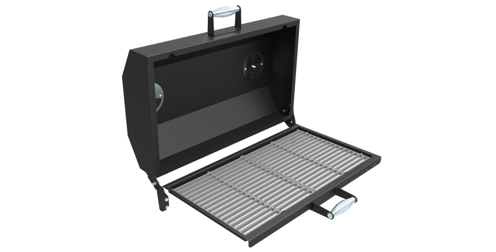 Крышка откидная, на шарнирах, с рукояткой, с ограничителем хода крышки, с вентиляционными заслонками и термометром.