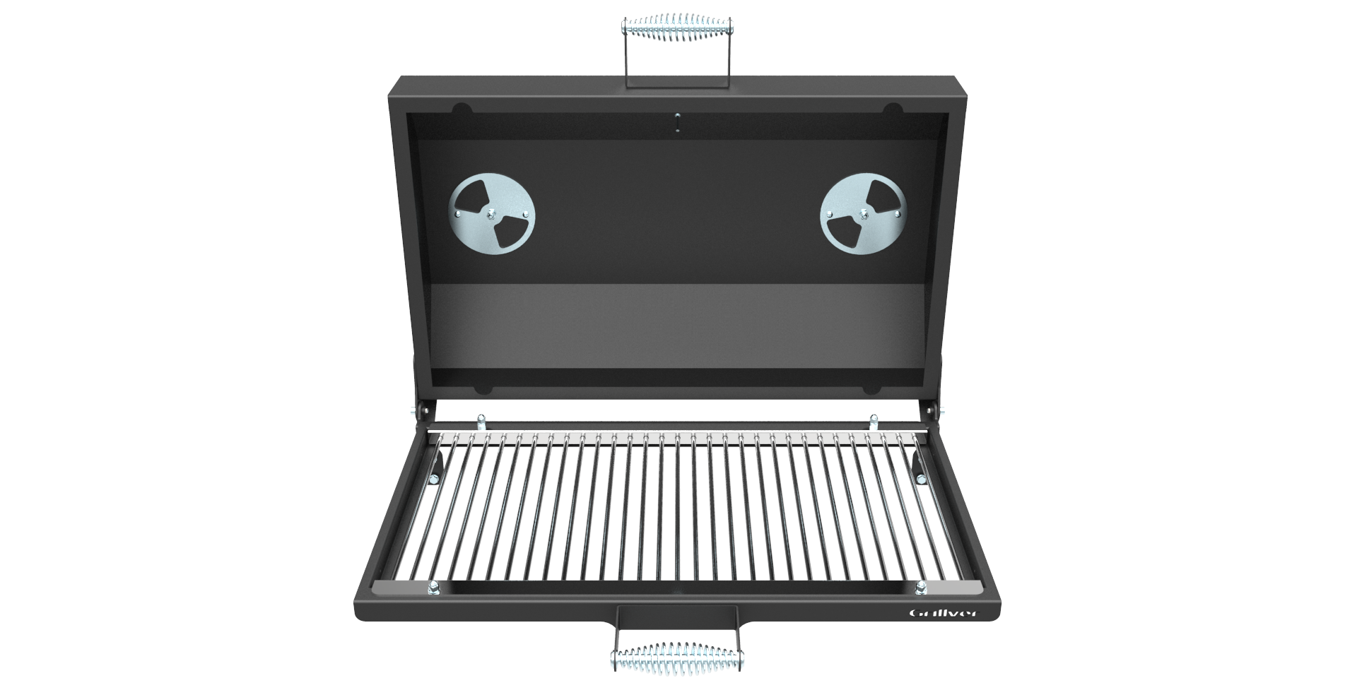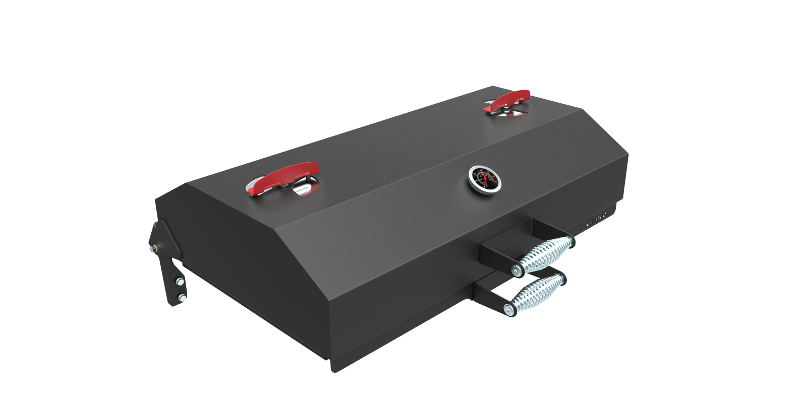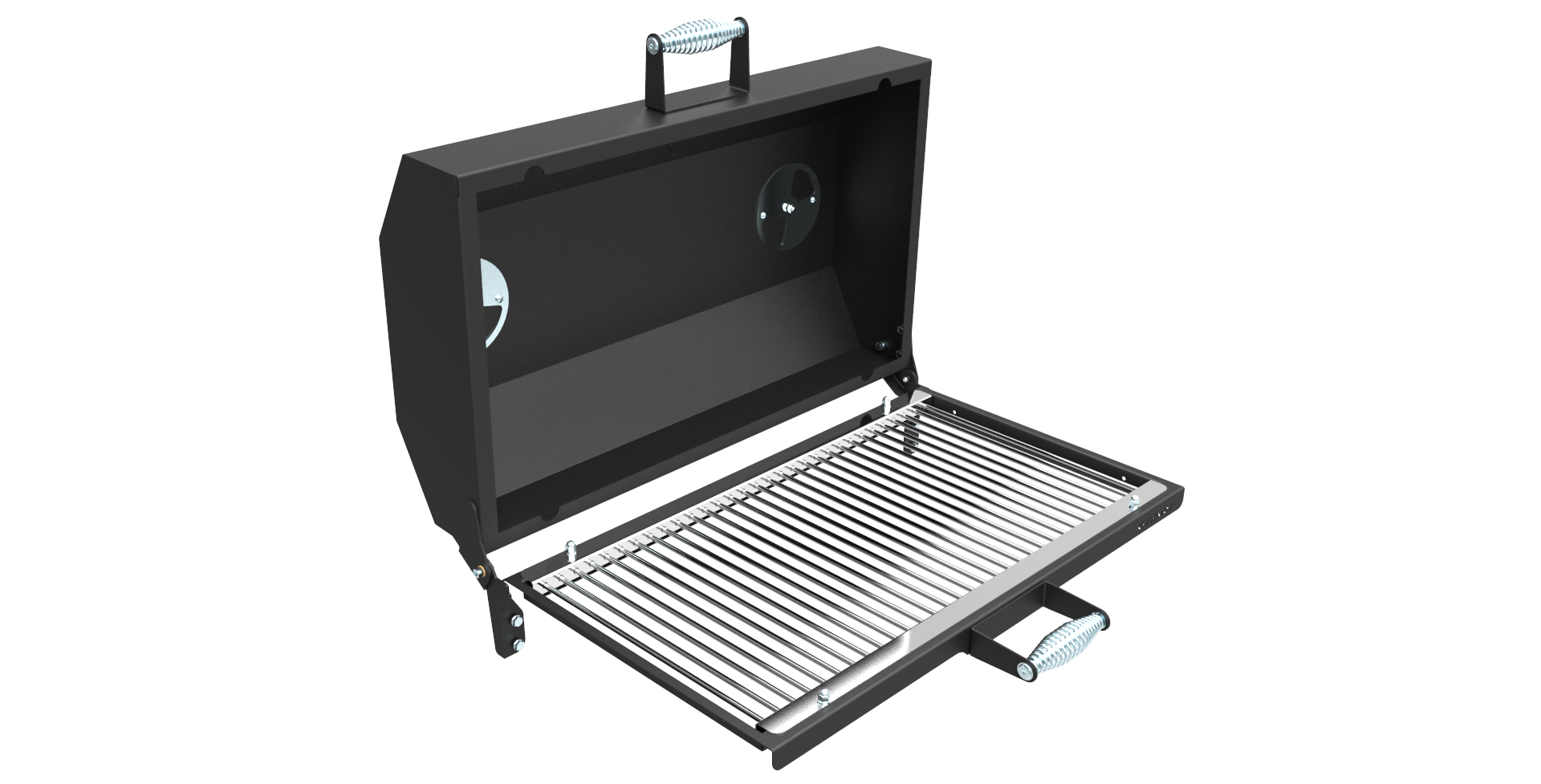 Крышка откидная, на шарнирах, с рукояткой, с ограничителем хода крышки, с вентиляционными заслонками и термометром.