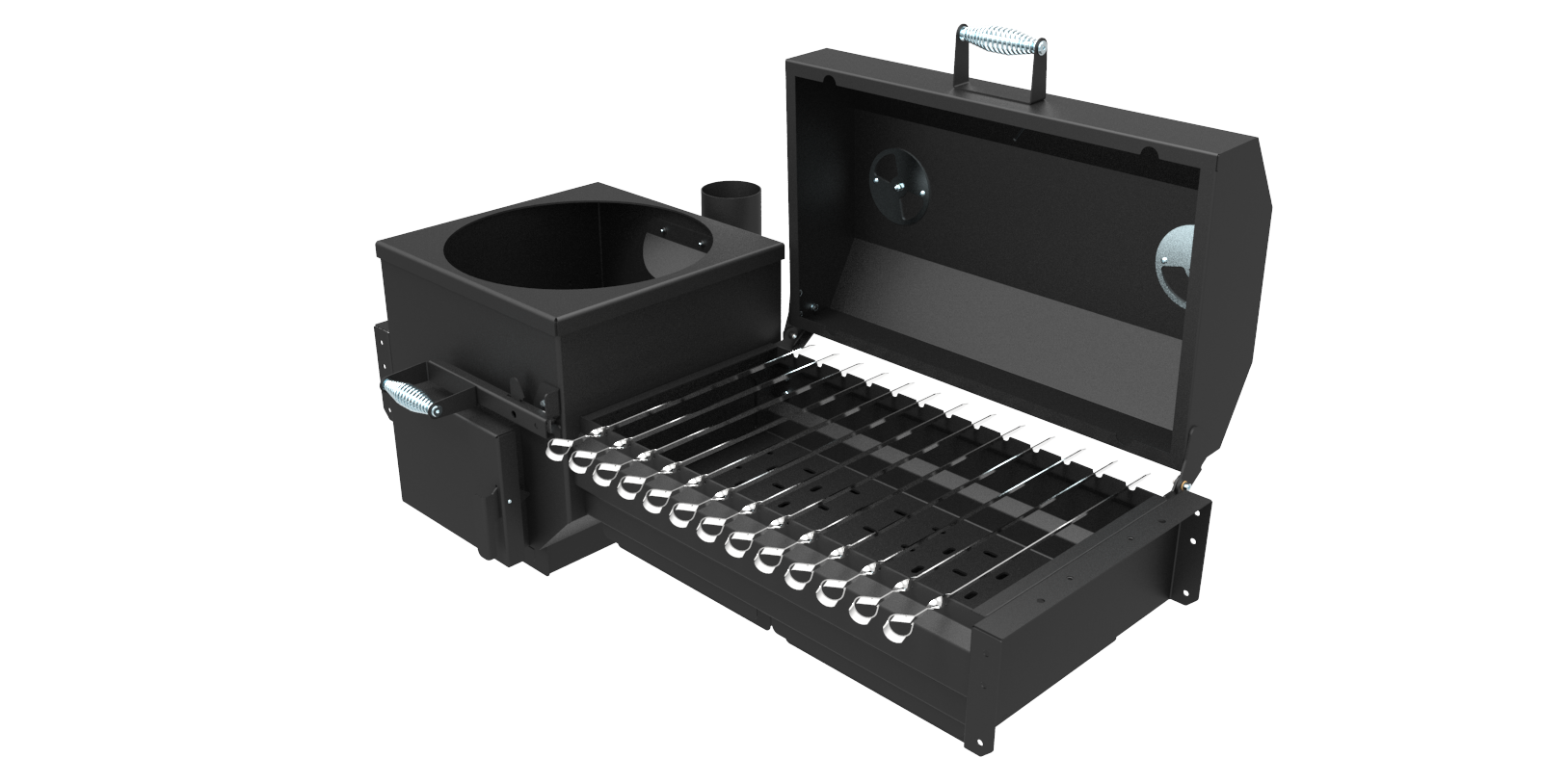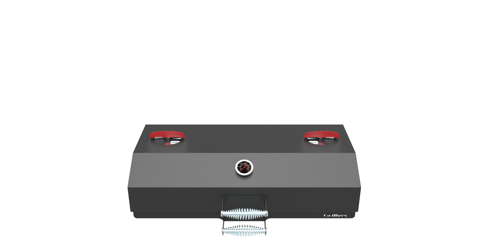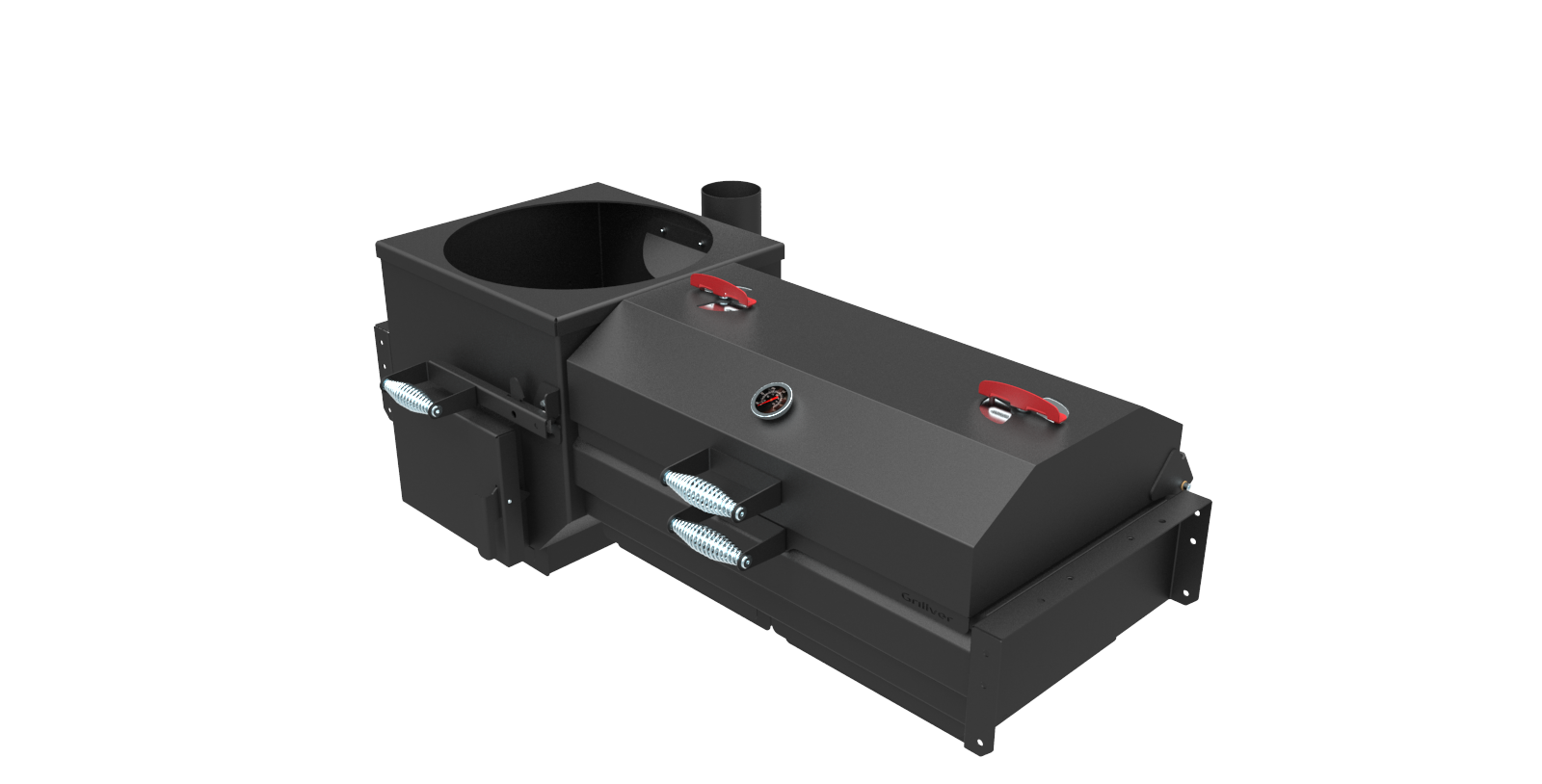 Крышка откидная, на шарнирах, с рукояткой, с ограничителем хода крышки, с вентиляционными заслонками и термометром.