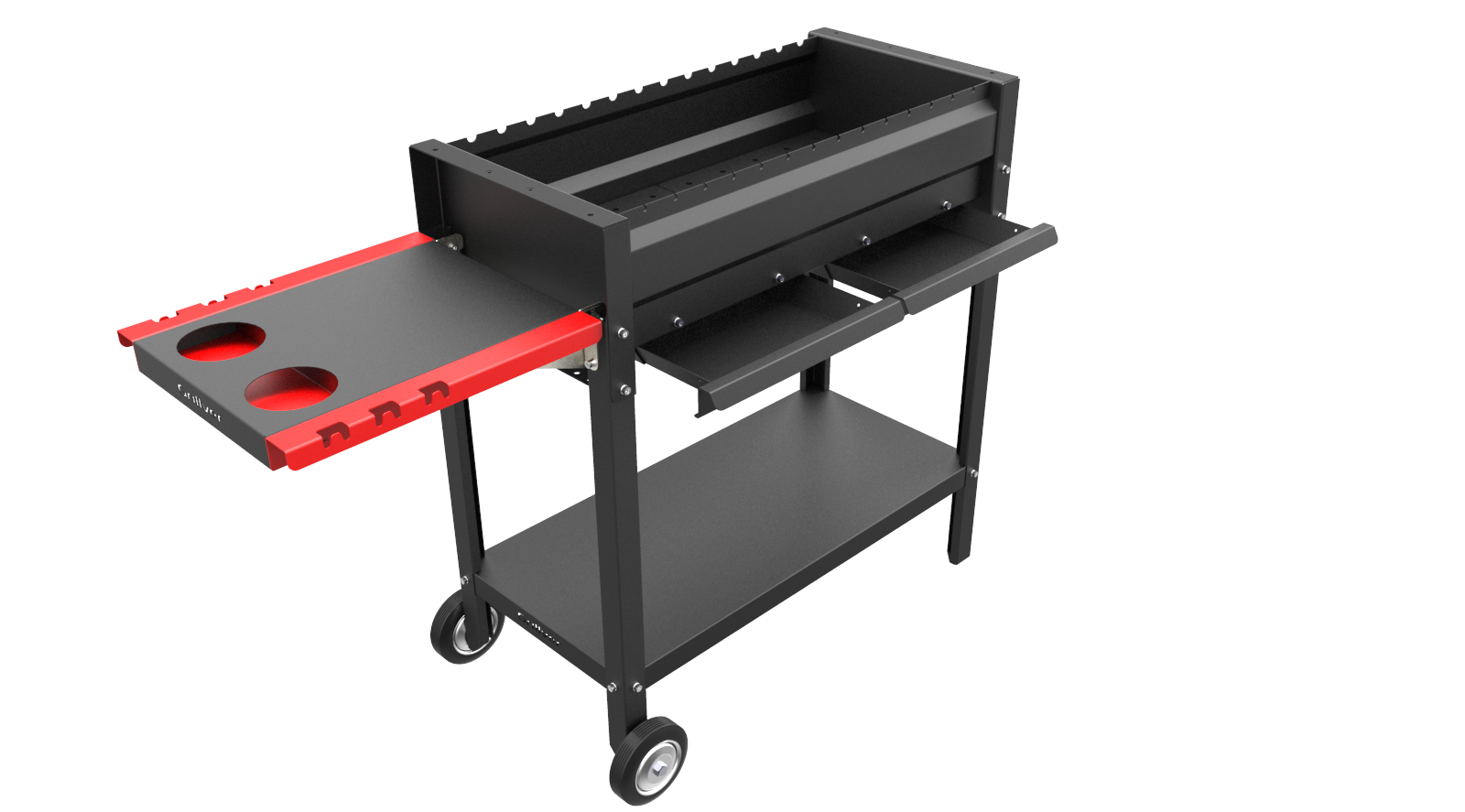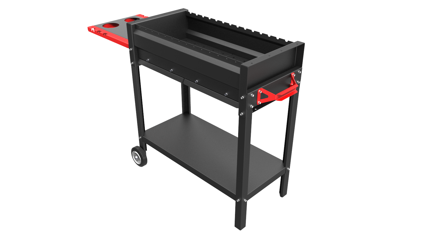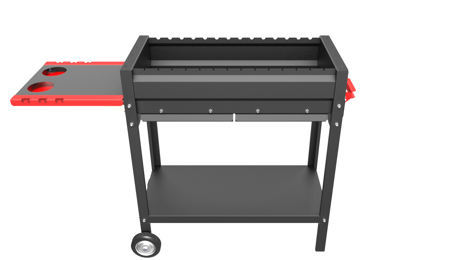 Мангал Редлайнер Комфорт Эйр - мангал с поддувалом и зольными ящиками, складным боковым столиком, на колёсах - очень удобный в использовании - оптимальный мангал для бытового использования - дома или на даче.