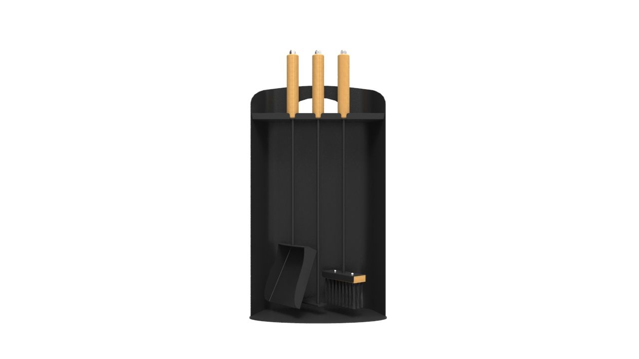 Набор для печи (напольный) - набор инструментов на прочной, надёжной напольной подставке. Набор уместен возле печей, мангальных комплексов и каминов. Конструкция подставки одинаково хорошо выглядит как спереди, так и с тыльной стороны. Кроме того, благодаря отогнутым под углом стенкам, подставку можно ставить в угол.