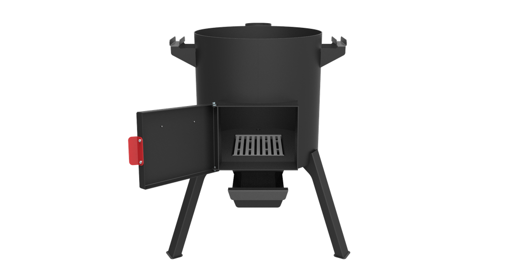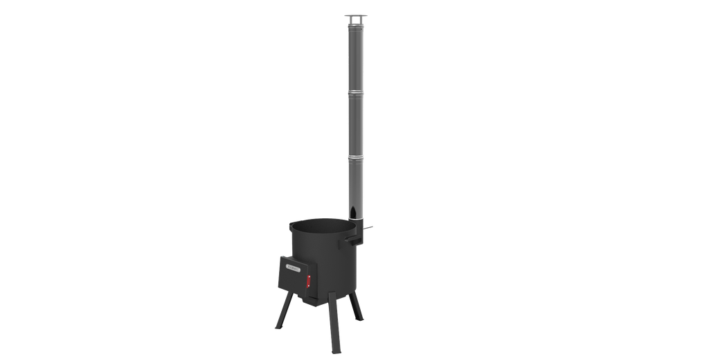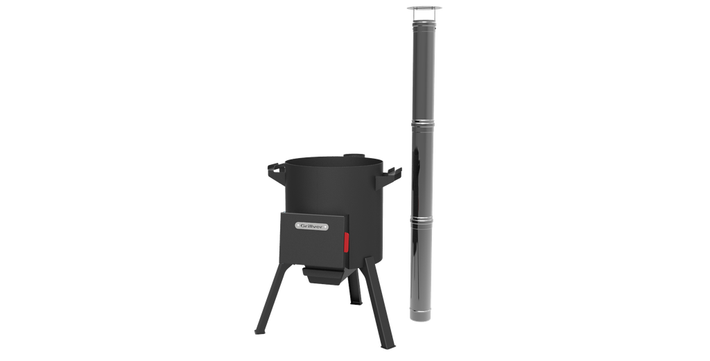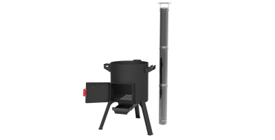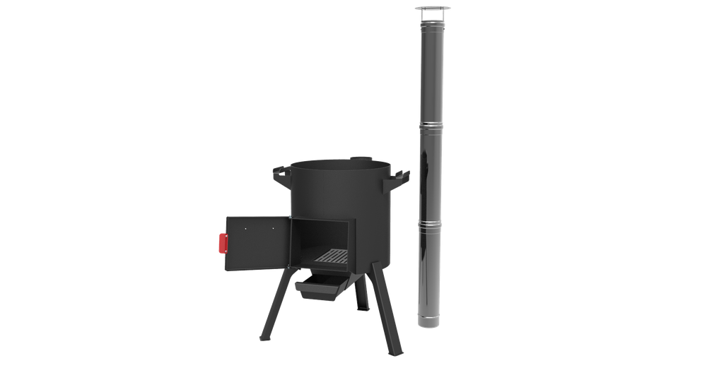 Печь для казана 18 л* - с разборным дымоходом (трубой), заслонкой дымохода, дверкой топки, зольным ящиком и чугунным колосником.