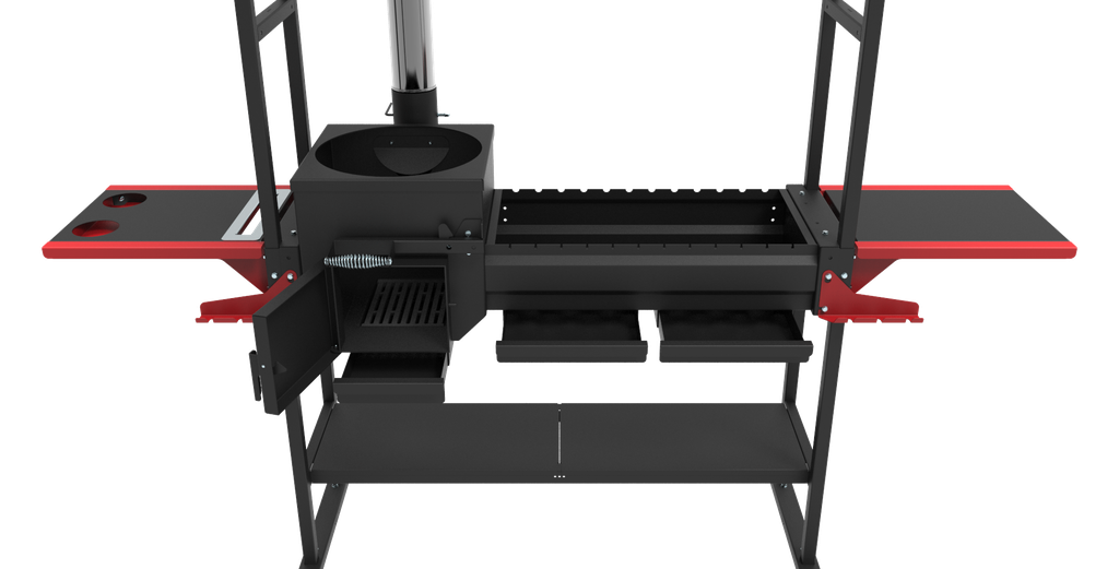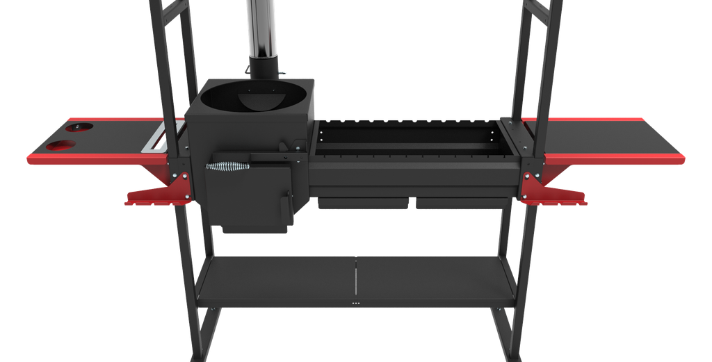 Топка мангала типа "Эйр" - с перфорированным дном и закрываемыми зольными ящиками.