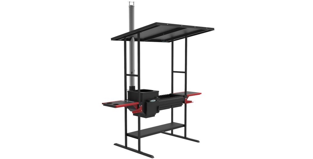 Комплектация "Инклайн" - для стационарной установки - с навесом от осадков, с нижней полкой и боковыми столиками.