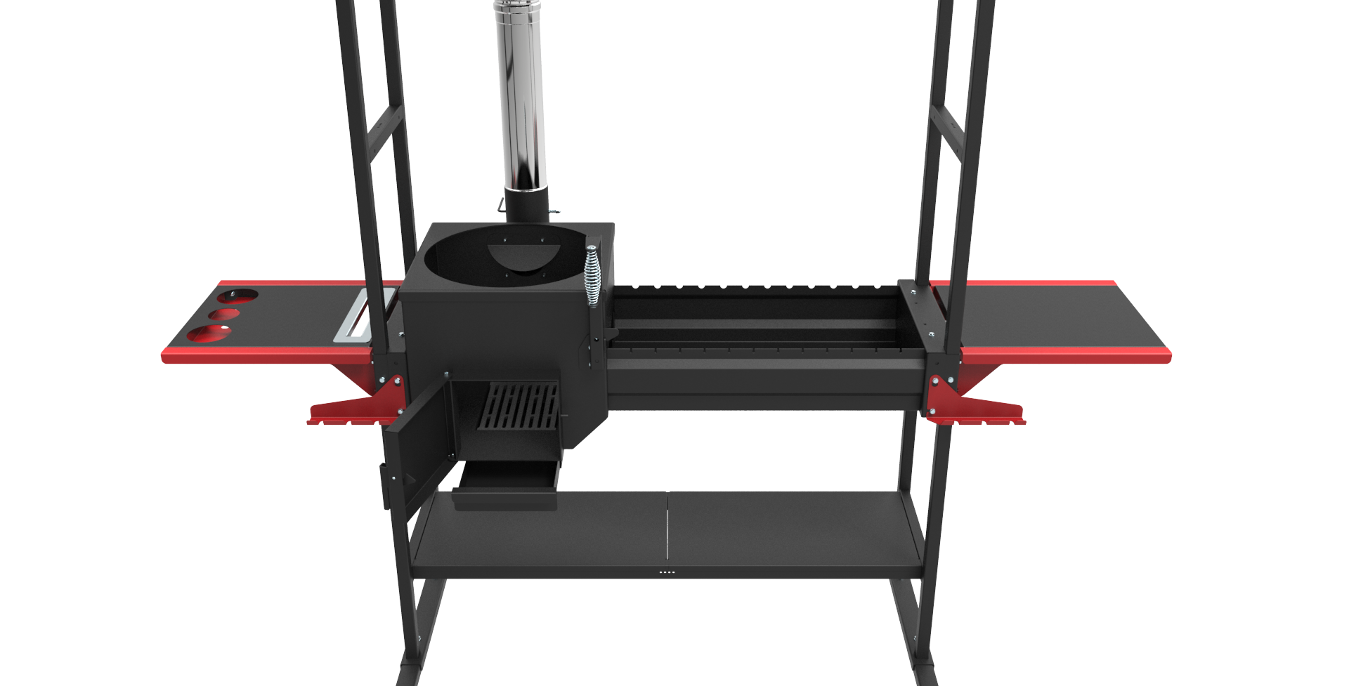 Печь-мангал Искандер-400 "Инклайн" - комбинированное устройство, содержащее печь под казан и мангал без зольных ящиков (без перфорации дна), с дымоходом, с поворотным клапаном между топками печи и мангала. Эта комплектация печь-мангала оснащёна навесом и боковыми столиками. Держатель крышки казана интегрирован в боковой столик.