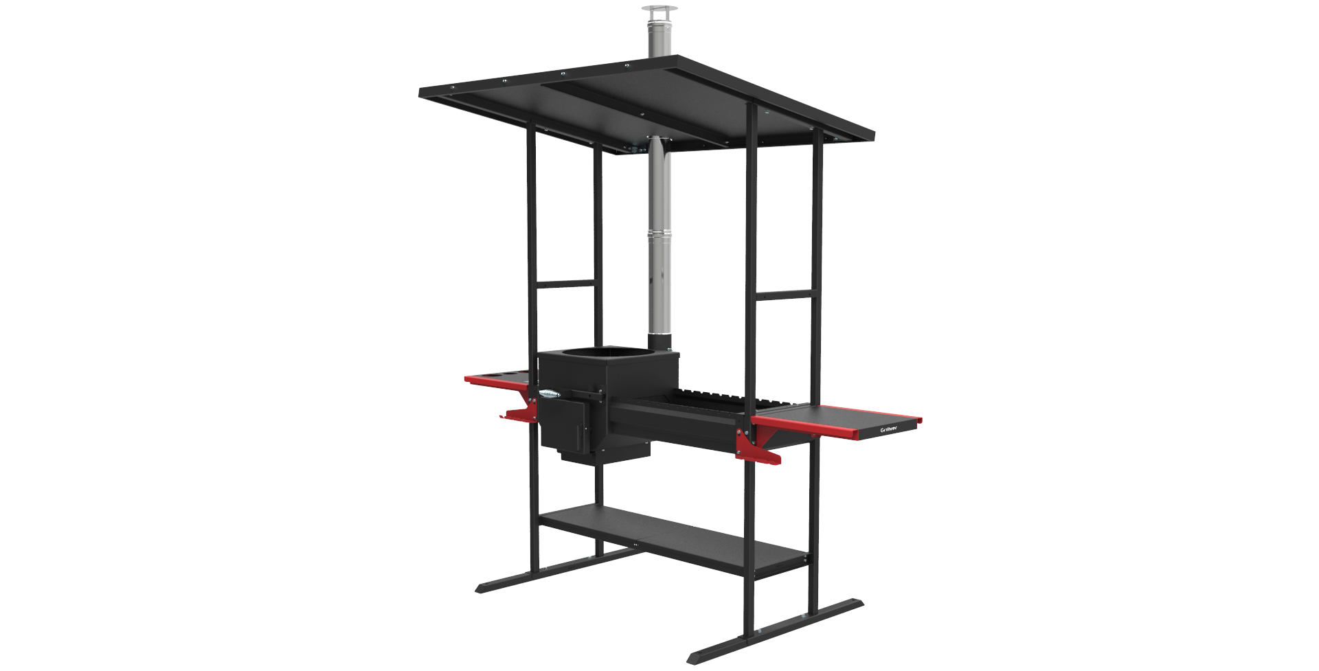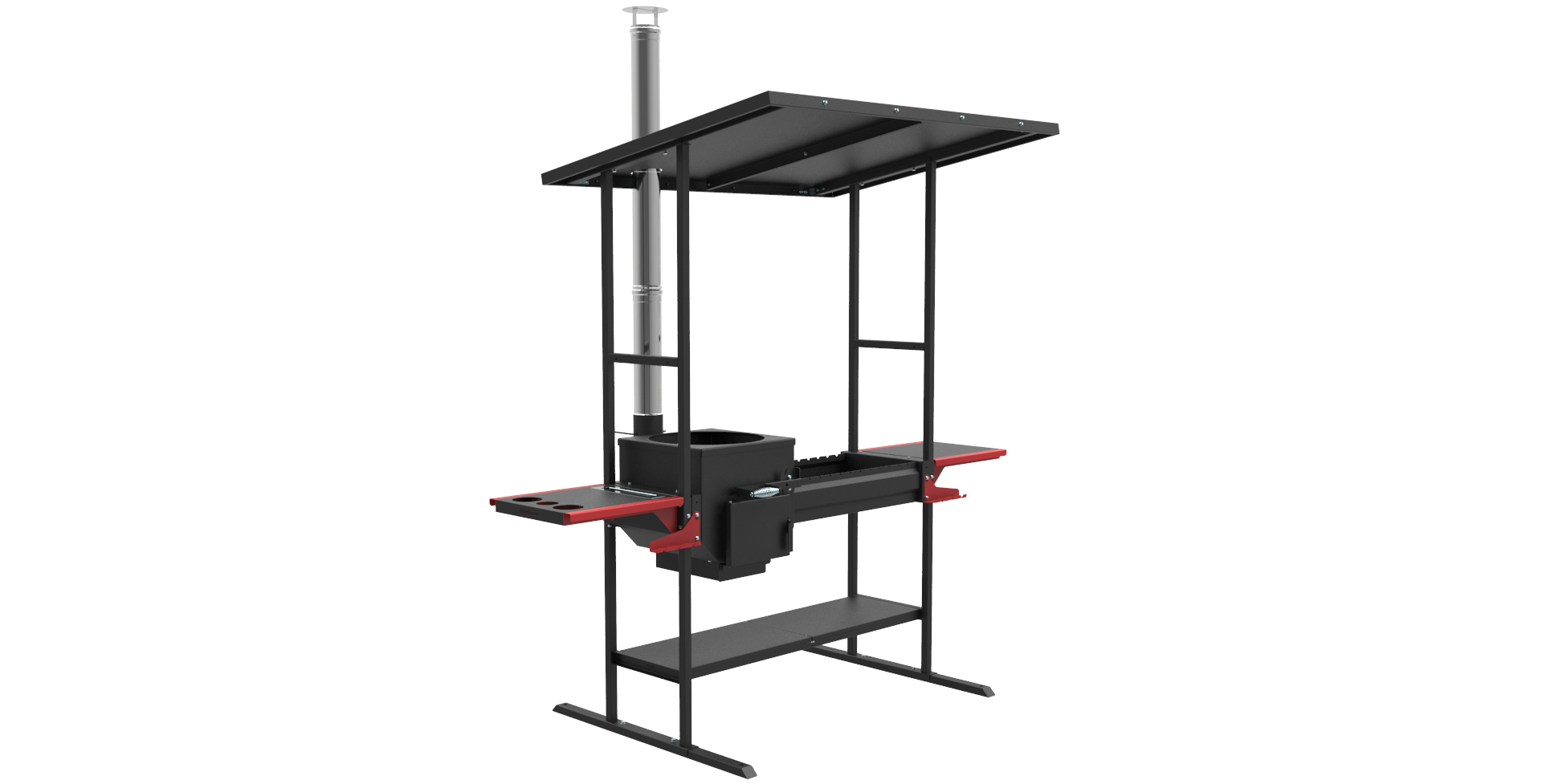Комплектация "Инклайн" - для стационарной установки - с навесом от осадков, с нижней полкой и боковыми столиками.