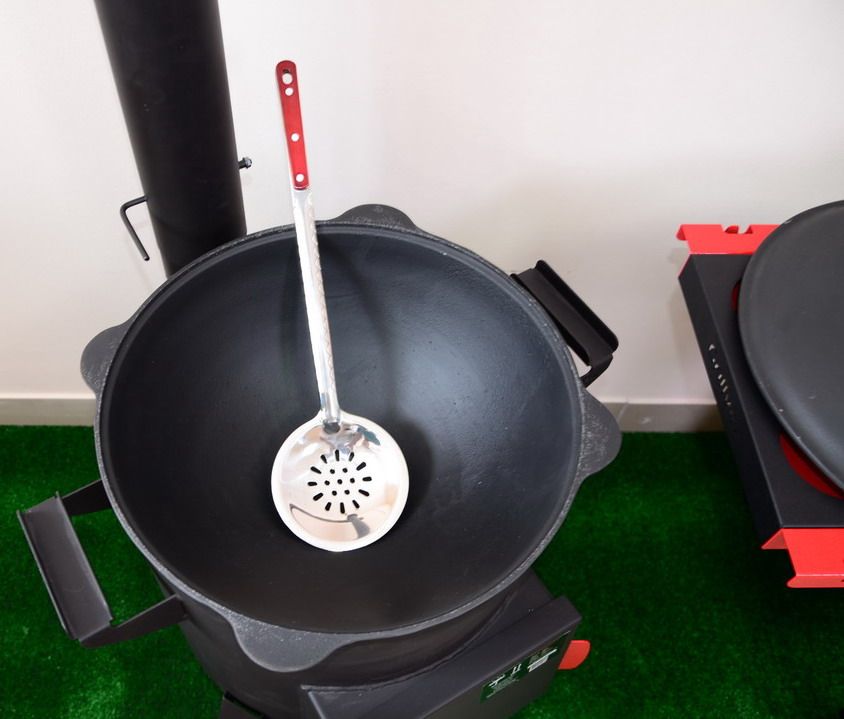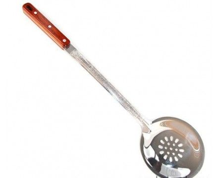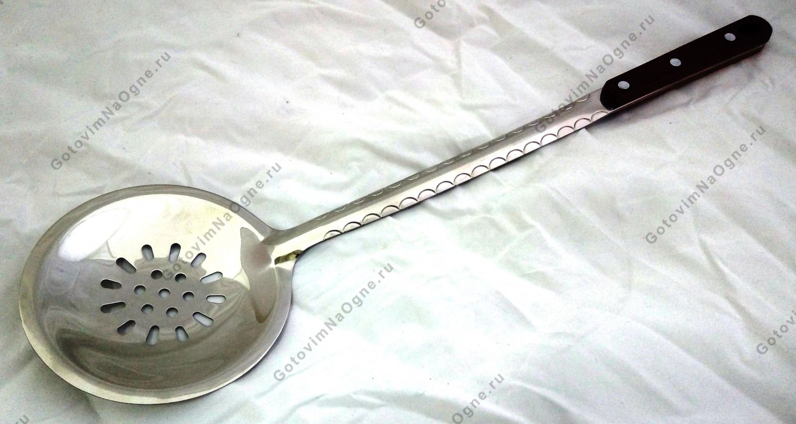 Эта шумовка специально сделана для казанов объёмом от 8 до 18 литров. Это среднего размера шумовка, но больше, крепче и прочнее, чем обычные шумовки для кастрюль.