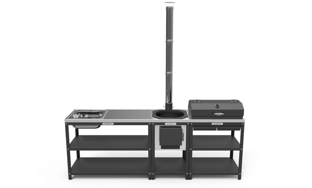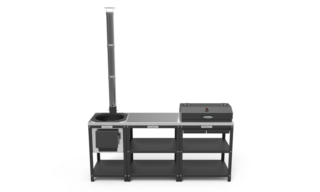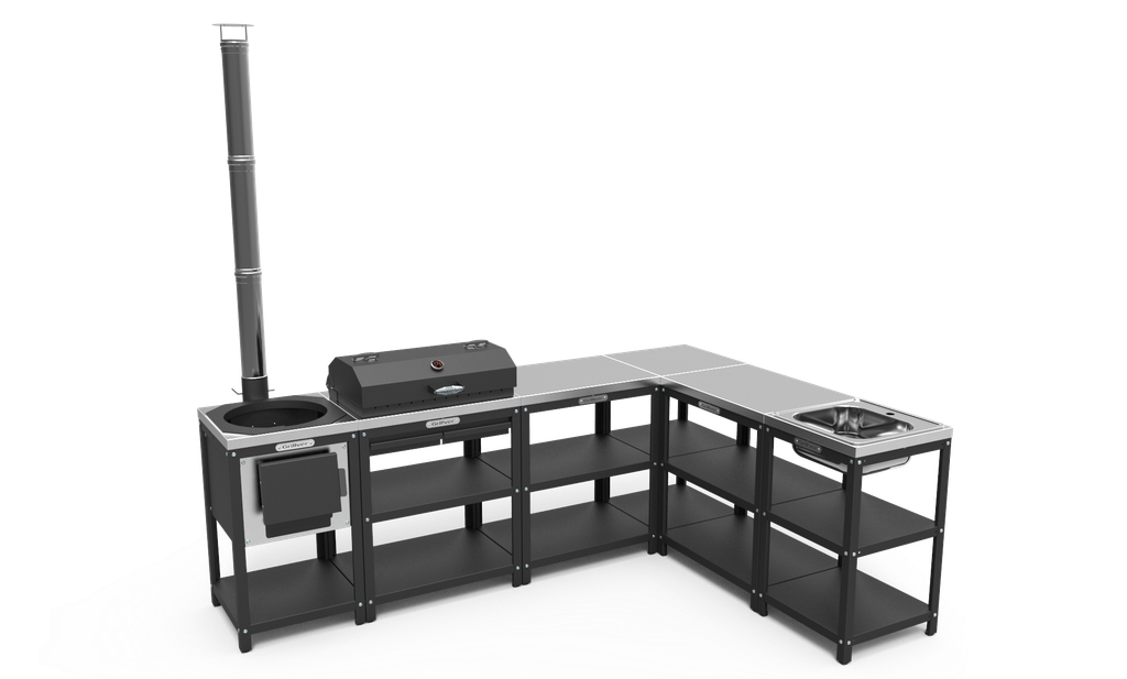 Кухонный модуль для компоновки рабочего пространства уличных кухонь, гриль-зон и зон барбекю. Выполнен в общем стилевом решении модельной серии.
